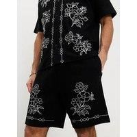 River Island Floral Embroidered Shorts - Black