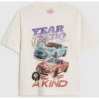 River Island Older Boys Year Zero Car T-Shirt - White