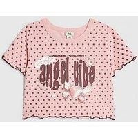 River Island Older Girls Polka Dot Angel Vibe T-Shirt - Pink