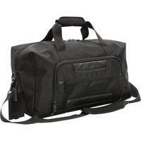 Material: PU, Polyester. Fabric: RPET. Denier: 1680D. Fabric Technology: Aware Tracer. Adjustable Shoulder Strap, Carry Handle, RFID Security, Trolley Strap. Compartments: 1 Internal Compartment, 1 Main Compartment, 2 Front Compartments. Capacity: 25L. Sustainability: Amfori, BSCI, Low Carbon Emissions. AZO Free, Chlorinated Paraffin Free, PVC Free. Conforms to Safety Standard: Cadmium Tested, REACH. | Swiss Peak Men's RPET Aware Duffle Bag in Black