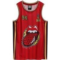 100% Polyester. Fabric: Mesh. Design: Back Print, Logo, Number, Sublimated, Text. Neckline: Round Neck. Sleeve-Type: Sleeveless. Fabric Technology: Breathable. 100% Officially Licensed. Fit: Regular. S: 41 in. M: 43 in. L: 45.5 in. XL: 48 in. XXL: 50 in. | Amplified Men's Voodoo Lounge The Rolling Stones Basketball Jersey in Red | Size: Medium