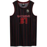100% Polyester. Fabric: Mesh. Design: Back Print, Logo, Number, Stripe, Sublimated, Text. Characters: Eddie. Neckline: Crew Neck. Sleeve-Type: Sleeveless. Fabric Technology: Breathable. 100% Officially Licensed. Fit: Regular. S: 41 in. M: 43 in. L: 45.5 in. XL: 48 in. XXL: 50 in.