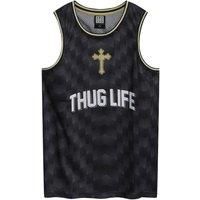 100% Polyester. Fabric: Mesh. Design: Back Print, Cross, Number, Patterned, Sublimated, Text. Neckline: Crew Neck. Sleeve-Type: Sleeveless. Fabric Technology: Breathable. 100% Officially Licensed. Fit: Regular. S: 41 in. M: 43 in. L: 45.5 in. XL: 48 in. XXL: 50 in. | Amplified Men's Tupac Shakur Basketball Jersey in Black | Size: Medium