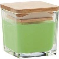 Material: Bamboo, Glass, Wax. Fragrance: Green Apple. Design: Plain, Square. Burning time: 8 hours. Height: 5.7cm. Width: 5.2cm. Length: 5.2cm. Sustainability: Amfori, BSCI, REACH, Sedex. Removable Lid. | MidOcean Pila Green Apple Square Bamboo Scented Candle in Lime