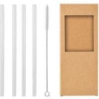 Material: Borosilicate Glass. Reusable. Contents: 4 Straw, 1 Brush. Design: Plain. | MidOcean Glaw Reusable Glass Straw (Pack of 4) in Cream