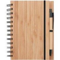Material: ABS, Bamboo, Paper. Lined Pages, Pen Holder, Push Button, Spiral Bound, Twin Wire Binding. Sustainability: Amfori, BSCI, REACH. No. of Pages: 140. | MidOcean Bambloc Bamboo Notebook & Pen in Cream