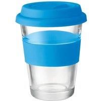 Material: Soda Lime Glass. Height: 12cm. Width: 9cm. Grip, Silicone Lid, Single Wall. Design: Plain. Capacity: 350ml. | MidOcean Astoglass Glass 350ml Tumbler in Blue