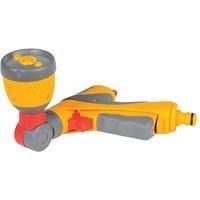 The Hozelock 2695 Ultra Twist is a unique 2-in-1 spray gun that with a simple twist converts into a lawn sprinkler, saving you time switching between attachments. The integrated sprinkler will cover lawn areas up to 69m. Using the lockable trigger and separate flow control, it can be set to water specific areas of the garden hands free, leaving you time to do other tasks or relax. Four spray patterns: Jet which is ideal for cleaning; Fast Fill for filling buckets or watering cans; Rose for gentle wateri...