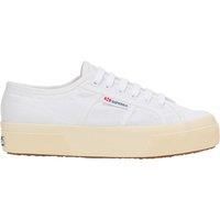 Upper: Linen. Lining: Organza, Soft. Insole: Branded. Outsole: Vulcanised Rubber. 6 Eyelets. Aluminum Eyelets, Cotton Lace. Platform. Heel Height: 3.5cm. Cut: Low. Trim: Faux Leather. Design: Logo. Toe Style: Round. Fastening: Lace Up. | Superga Women's 2740 Linen Platform Trainers in White | Size: 6.5
