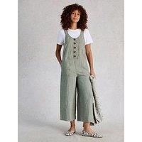 White Stuff Viola Linen Dungaree Size & Fit True to size - order your usual size Relaced fit Ankle length Available in sizes 8 - 18 Model wears a size 10 and is 5'9"/175cm Details Viola Linen Dungaree by White Stuff Green Linen chambray fabric Sleeveless Wide straps Scoop neck Roomy side pockets Statement front buttons Machine washable Material & Care Material Content: 100% Linen Washing Instructions: Machine Washable