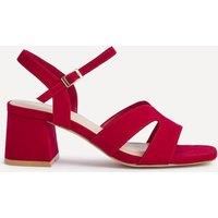 Our Empire wide fit heels feature a square toe with a link detail front strap. Set on a low 5.5cm block heel and cushioned insole for added comfort. Perfect for any occasion and effortlessly easy to style. | Linzi Women's Empire Wide Fit Red Faux Suede Link Detail Block Heels | Size: 5-Wide Fit - Manufacturers part number: Linzi_5063783005377
