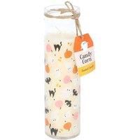 Material: Paraffin Wax. Design: Bats, Black Cat, Pumpkin. Fragrance: Candy Corn. Burning time: 50 hours. Height: 21cm. Width: 5.5cm. Please Note: Do Not Leave Unattended. Depth: 5.5cm. Contents: 1 Jar. Packaging: Boxed, Cardboard, Hang Tag. Occasion: Halloween. | Something Different Sweet and Spooky Candy Corn Printed Scented Candle in White