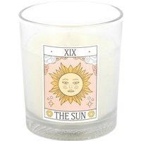 Material: Paraffin Wax. Design: Printed. Fragrance: Rose. Height: 11cm. Width: 8.5cm. Depth: 8.5cm. Packaging: Boxed, Cardboard. | Something Different The Sun Rose Tarot Vintage Candle in White