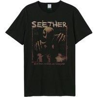 100% Cotton. Fabric: Carbon Brushed, Soft Touch. Design: Graphic Print, Logo, Skull, Text. Neckline: Crew Neck, Ribbed. Sleeve-Type: Rolled Back Cut Seams, Short-Sleeved. Hem: Rolled Back Cut Seams, Twin Needle Stitch. Chain Stitch, Twin Needle Sleeves. 100% Officially Licensed. Fit: Loose. Please Note: Shrinkage Will Occur After Washing. XS: 38.5 in. S: 40 in. M: 41.5 in. L: 43 in. XL: 44.5in. XXL: 46.5 in. 3XL: 48 in. | Amplified Men Beat Down In Fear Seether T-Shirt in Black | Size: X-Large