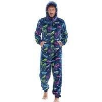 100% Polyester. Fabric: Fleece. Design: All-Over Print, Game Controller, Text. Pockets: 2 Side Pockets. Cuff: Fitted. Hem: Fitted. Neckline: Hooded. Sleeve-Type: Long-Sleeved. Hood Features: Drawstring, Sew-On. Fabric Technology: Soft. Fastening: Half Zip. | Floso Men's Game Controller Fleece Jumpsuit in Blue | Size: Medium/Large