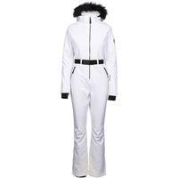 Outer Materials: 94% Polyester, 6% Elastane. Lining Material: 100% Polyamide. Filling Material: 60% Elastomultiester, 40% Polyester. Pockets: 2 Side Pockets, Zip, Ski Pass Pocket. Hood Features: Adjustable, Detachable Faux Fur Trim, Zip-Off. Cuff: Adjustable Wrist Strap, Inner Stretch. Belt Loops, Removable Waist Belt. Fastening: Water Repellent Zip. | Trespass Women's Valene DLX Ski Suit in White | Size: XL - Manufacturers part number: Trespass_5063852362424