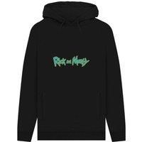 100% cotton. Design: printed. Hood features: drawstring, sew-on. Hem: elasticated. Cuff: elasticated. Neckline: hooded. Sleeve-type: long-sleeved. Pockets: 1 kangaroo pocket. Fastening: pull over. 100% officially licensed. S: 40 in. M: 44 in. L: 48 in. Xl: 52 in. Xxl: 54 in. | Rick & Morty Men's Graphic Logo Hoodie in Black | Size: 2XL