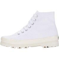 Upper: Cotton Canvas. Lining: Unlined. Insole: Branded. Outsole: Lug Sole, Rubber. 7 Eyelets. Fabric Technology: Breathable. Aluminum Eyelets, Branded Eyelets, Branded Heel Counter, Cotton Lace. Low Heel. Cut: High-top. Design: Logo, Plain. Toe Style: Round. Fastening: Lace Up. | Superga Men's 2341 Alpina Shiny Gum High Top Trainers in White | Size: 2.5