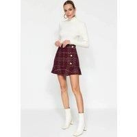 WOVCOR Women's Tweed Mini Skirt with Button & Flounce Hem Detail in Burgundy | Size: 10
