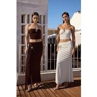 WOVCOR Women's Maxi Knit Skirt with Ring Accessory Detail in Brown | Size: 8