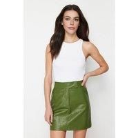 WOVCOR Women's Textured Faux Leather A-Line Mini Skirt in Green | Size: 10