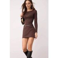 WOVCOR Women's Belted Mini Skirt with Pocket Detail in Brown | Size: 12