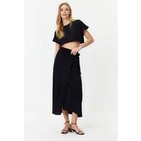 WOVCOR Women's Wrap Midi Woven Skirt with Tie Detail in Black | Size: 8