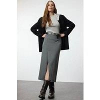 WOVCOR Women's High Waist Maxi Woven Skirt with Front Slit Detail in Grey | Size: 14