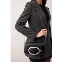 This mini clutch bag features a structured envelope silhouette with a bold metal detail on the flap and a delicate chain strap for elegant shoulder or cross-body wear. Crafted from smooth faux leather, it delivers a refined finish that complements both tailored looks and occasion outfits. The compact interior is designed to hold everyday essentials such as a phone, small wallet and keys, while the fold-over flap with secure fastening keeps contents safely in place. A slim profile ensures it sits comfort...