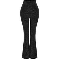 This high-waist knit trouser features a shimmering glitter finish and a flattering flared silhouette designed to elongate the legs. Crafted from a soft stretch knit blend, it offers lightweight warmth and comfortable flexibility throughout the day. The glitter texture adds eye-catching dimension and a refined party-ready look, while the high-rise waistband ensures a secure and sculpting fit. Perfect for evening outings, celebrations, or elevated casual wear, this statement piece combines comfort, style,...
