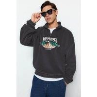 WOVCOR Men's Stand Collar City Embroidered Fleece Sweatshirt in Dark Grey | Size: Small
