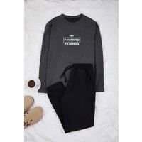 WOVCOR Men's 2 Piece Slogan Printed Knit Pyjama Set in Dark Grey | Size: Large