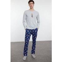 WOVCOR Men's 2 Piece Teddy Bear Printed Knit Pyjama Set in Navy | Size: Large