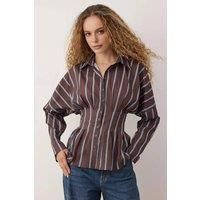 WOVCOR Women's Stripe Print Waist Fitted Button Through Shirt | Size: 8