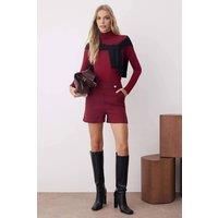 WOVCOR Women's High Waist Tweed Shorts in Burgundy | Size: 8