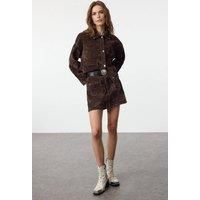 Elevate your everyday wardrobe with this suede-look mini denim skirt, designed to bring texture and structure to modern styling. Crafted from denim fabric with a soft, suede-inspired finish, it offers a refined look while remaining easy to wear. The clean mini silhouette is balanced with a structured shape, making it a versatile choice for both casual and smart-casual outfits. Easy to pair with knitwear, shirts or lightweight jackets, this skirt transitions effortlessly from day to evening looks. CARE I...