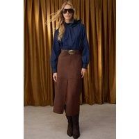 WOVCOR Women's Suede Finish A-Line Maxi Knit Skirt with Button & Zip Detail in Brown | Size: XS