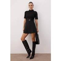 This skater mini dress features a structured knit construction with a flattering fit-and-flare silhouette designed to enhance everyday styling. Crafted from a stretch knit fabric, it offers comfortable wear while maintaining a smooth and refined shape. The high neckline adds a modern, polished touch, while the belt detail defines the waist for a balanced and feminine profile. Finished with short sleeves and a clean hemline, this dress delivers effortless style, comfort, and versatility for both day and ...