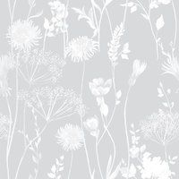 Material: Paper. Design: Floral. Design Repeat: 53cm. Easy Application, Paste the Paper. | Catherine Lansfield Meadowsweet Floral Wallpaper in Grey - Manufacturers part number: Catherine Lansfield_5063884355821