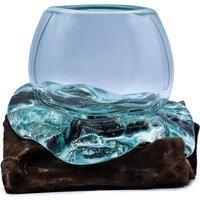 KDMD Molten Glass Goldfish Bowl on Wood - Handcrafted 20cm Decor Piece in Turquoise
