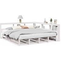 Get a better restful night's sleep from this bookcase bed! It makes a welcoming addition to any bedroom. Stable and long-lasting frame: Solid pinewood is known for its strength and durability. Its straight grains and distinctive knots contribute to its rustic charm. Slatted base for optimal support: The bed frame is equipped with a slatted base for support and breathability for your mattress. Ample storage space: This headboard features built-in storage to keep books, decorative items, and essentials o...