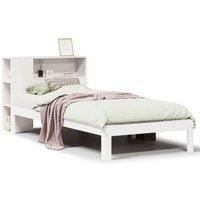 Get a better restful night's sleep from this bookcase bed! It makes a welcoming addition to any bedroom. Stable and long-lasting frame: Solid pinewood is known for its strength and durability. Its straight grains and distinctive knots contribute to its rustic charm. Slatted base for optimal support: The bed frame is equipped with a slatted base for support and breathability for your mattress. Ample storage space: This bookcase headboard offers ample storage space to keep books, decorative items, or per...