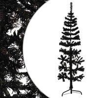 Colour: Black . Material: PVC, steel . Tree width: 45 cm . Total height: 150 cm . Stand size: 35 x 35 cm (L x W) . With 176 tips . Half- round . Assembly required: Yes | Berkfield Home Slim Artificial Half Christmas Tree with Stand Black 150 cm