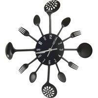 Colour: Black . Material: Aluminium . Diameter: 40 cm . Requires 1 AA battery (not included) | Berkfield Home Wall Clock with Spoon & Fork Design Black 40 cm Aluminium