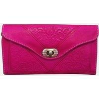 These Large Tri-Fold Purses are the perfect way to stand out from the crowd without breaking your bank balance. The vintage style soft leather and hand-stamped design are eye-catching without being garish. With multiple compartments and card slots, this is the perfect purse to help you stay organised. | Berber Leather Women's Tri-Fold Embossed Leather Purse in Pink