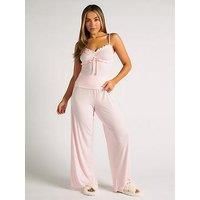 Boux Avenue Ribbed Frill Cami & Pant Pyjama Set - Pink Washing Instructions: Machine Washable - Manufacturers part number: VU0EO