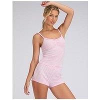 Boux Avenue Stripe Pointelle Pyjama Set Size & Fit True to size - order your usual size Available in sizes 6 - 18 Details Stripe Pointelle Pyjama Set - Mix by Boux Avenue Pink Single Sleeveless strappy cami Scoop neck Short Elasticated waist detail Pull on fastening Striped print Washing Instructions: Machine Washable
