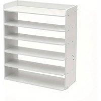 Durable Wood: Sturdy and long-lasting construction with a sleek white finish. Space-Saving: Slim and compact footprintperfect for small spaces. Easy Assembly: Quick setup with included hardware and instructions. Versatile Top Shelf: Extra surface for dcor, bags, or accessories. 6-Tier Capacity: Stores up to 18 pairs of shoes. Minimalist Look: Blends easily with any dcor.
