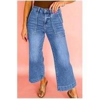 These comfortable denim jeans offer a stylish and practical choice for everyday wear. Featuring functional pockets these jeans provide both convenience and a fashionable look. | Everyday The Label Women's Sky Blue Cropped High Rise Wide Leg Jeans in Pale Blue | Size: 14