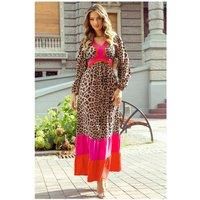 Embrace your wild side with the Brown Leopard Color Block V Neck Loose Fit Maxi Dress. This striking piece from features a trendy leopard print and a modern color block design. The V neck detail enhances the dresss allure while the loose and flowy fit ensures all-day comfort. Perfect for making a statement this maxi dress will have you standing out from the crowd. | Everyday The Label Women's Brown Leopard Color Block V Neck Loose Fit Maxi Dress | Size: Large